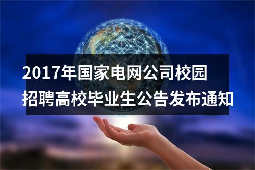 国家电网公司(以下简称“公司”)2017年招聘高校毕业生工作已启动,欢迎高校毕业生应聘公司所属省(自治区、直辖市)电力公司和直属单位(以下简称“各单位”)。现将有关事项公告如下: