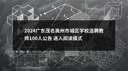 【2024广东茂名高州市城区学校选聘教师100人公告 进入阅读模式】相关岗位: