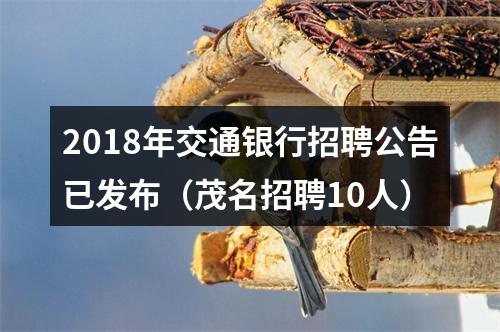 声明:专注 2018年交通银行招聘公告已发布(茂名招聘10人) 相关岗位分析;专业指导面试技巧;保障就业成功概率。