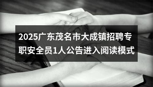 【2025广东茂名市大成镇招聘专职安全员1人公告进入阅读模式】相关岗位: