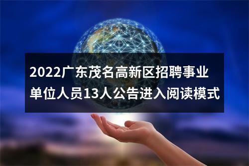 【2022广东茂名高新区招聘事业单位人员13人公告进入阅读模式】相关岗位: