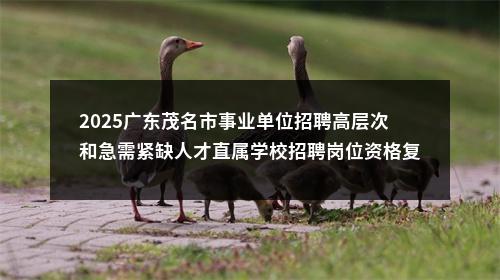 原标题:广东省事业单位2025年集中公开招聘高层次和急需紧缺人才茂名市直属学校招聘岗位资格复审公告
