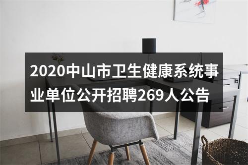 因事业发展需要,根据《广东省事业单位公开招聘人员办法》(广东省人民政府令第139号)和中山市有关文件规定,中山市卫生健康系统事业单位面向社会公开招聘工作人员269名,现将有关事项公告如下。