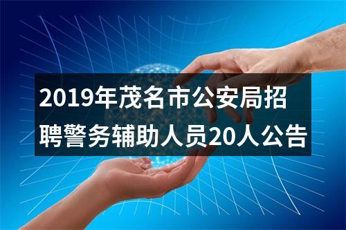 根据工作需要,茂名市公安局面向社会公开招聘20名警务辅助人员,现将招聘有关事项公告如下: