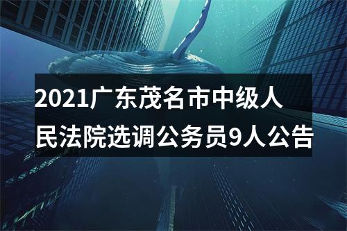 按照《中华人民共和国公务员法》等有关规定,茂名市中级人民法院面向全省公开选调9名公务员(含参照公务员法管理事业单位工作人员)。现将有关事项公告如下: