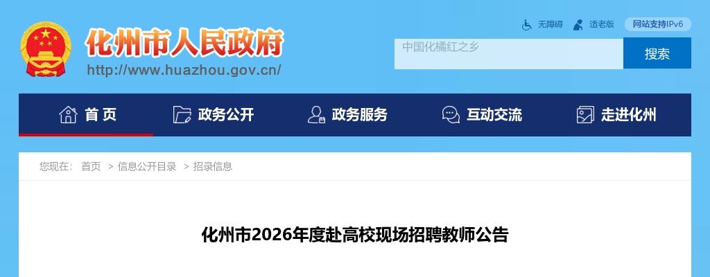 原标题:化州市2026年度赴高校现场招聘教师公告