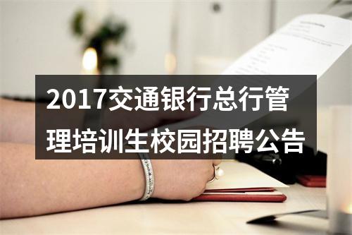 声明:专注 2017交通银行总行管理培训生校园招聘公告 相关岗位分析;专业指导面试技巧;保障就业成功概率。