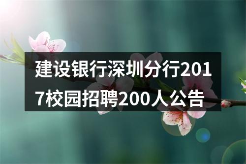 声明:专注 建设银行深圳分行2017校园招聘200人公告 相关岗位分析;专业指导面试技巧;保障就业成功概率。