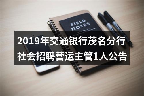 【2019年交通银行茂名分行社会招聘营运主管1人公告】相关岗位: