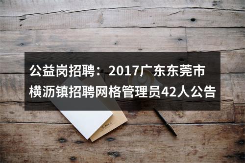 【公益岗招聘:2017广东东莞市横沥镇招聘网格管理员42人公告】相关岗位: