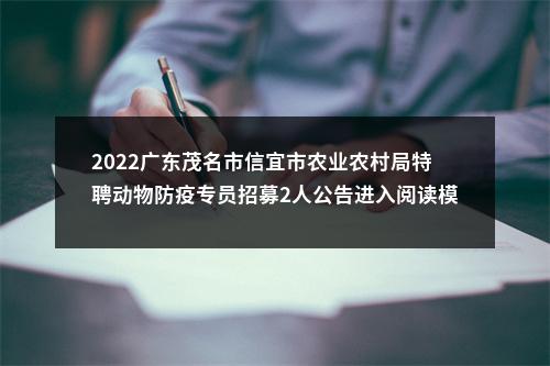 原标题:2022年信宜市农业农村局特聘动物防疫专员招募公告