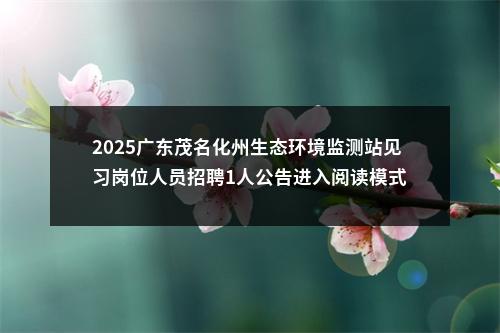 【2025广东茂名化州生态环境监测站见习岗位人员招聘1人公告进入阅读模式】相关岗位: