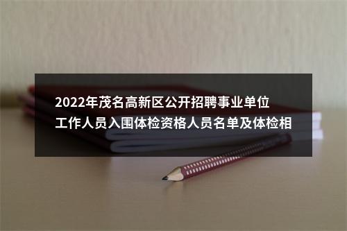 原标题:2022年茂名高新区公开招聘事业单位工作人员入围体检资格人员名单及体检相关事项公告